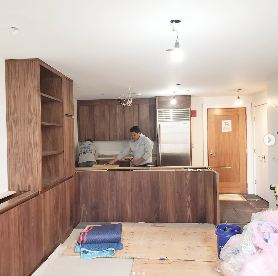 This gorgeous walnut was hand-selected and matched to get the desired look, bringing much-needed storage capacity and aesthetic continuity to an open, minimal space. Stay tuned - this one's almost done, and it's going to be *fantastic.* 🛠️❤️- Marilyn